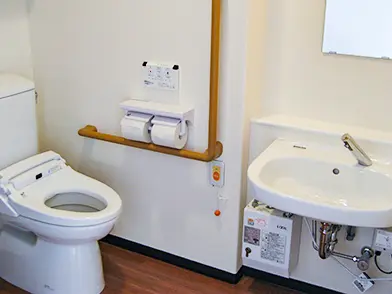 居室内にはトイレ・緊急時のナースコールや吸引設備が常設されている、安心の生活空間です。